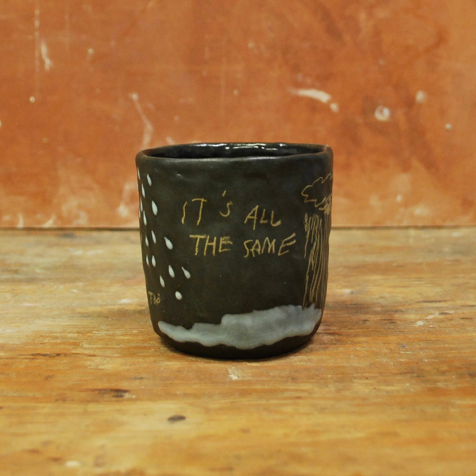 raw clay exterior, glazed interior