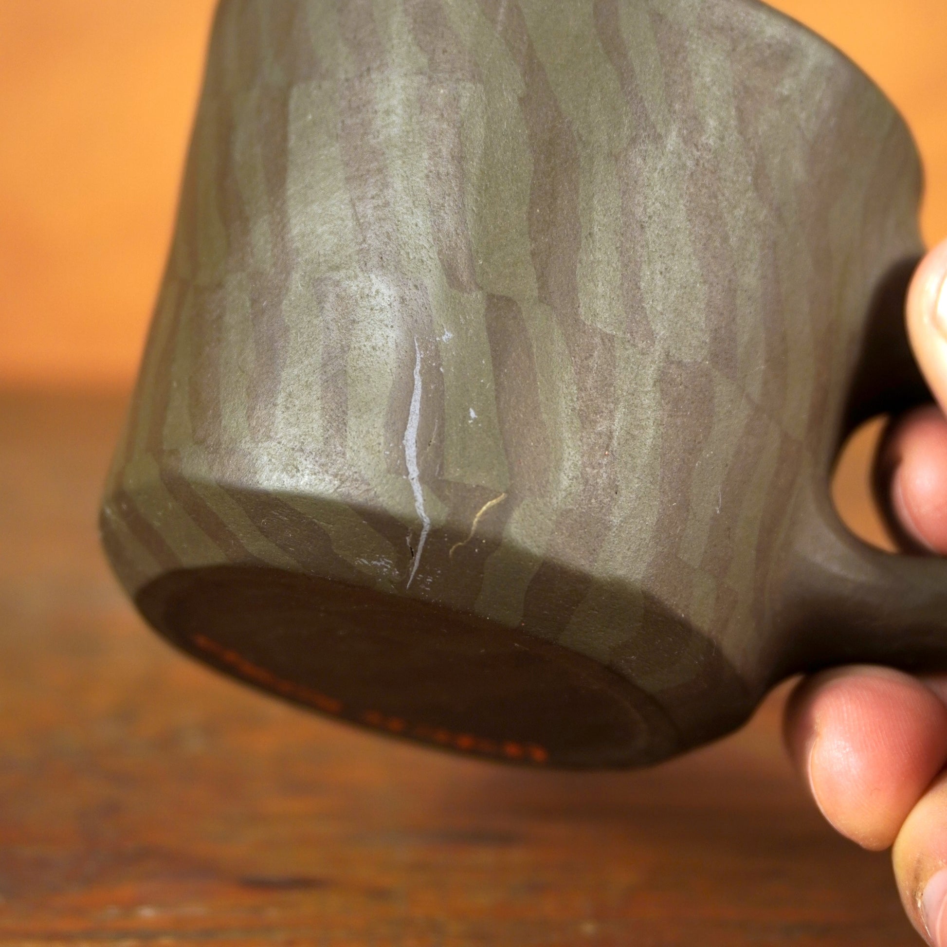 *exterior crack filled with epoxy, fully functional- while the epoxy is waterproof and can withstand heat up to 500 F, i do recommend handwashing and not putting in the microwave for the longevity of the piece