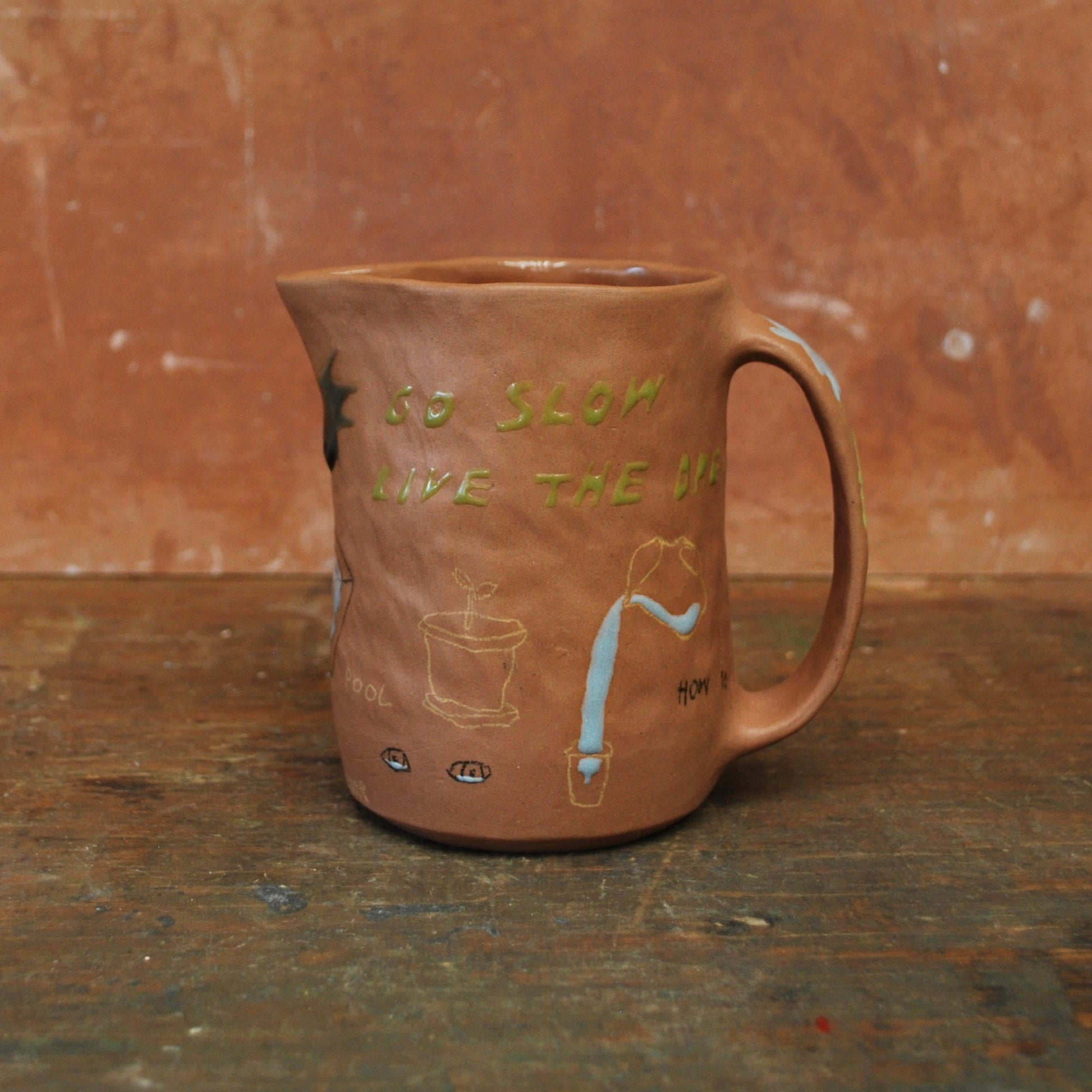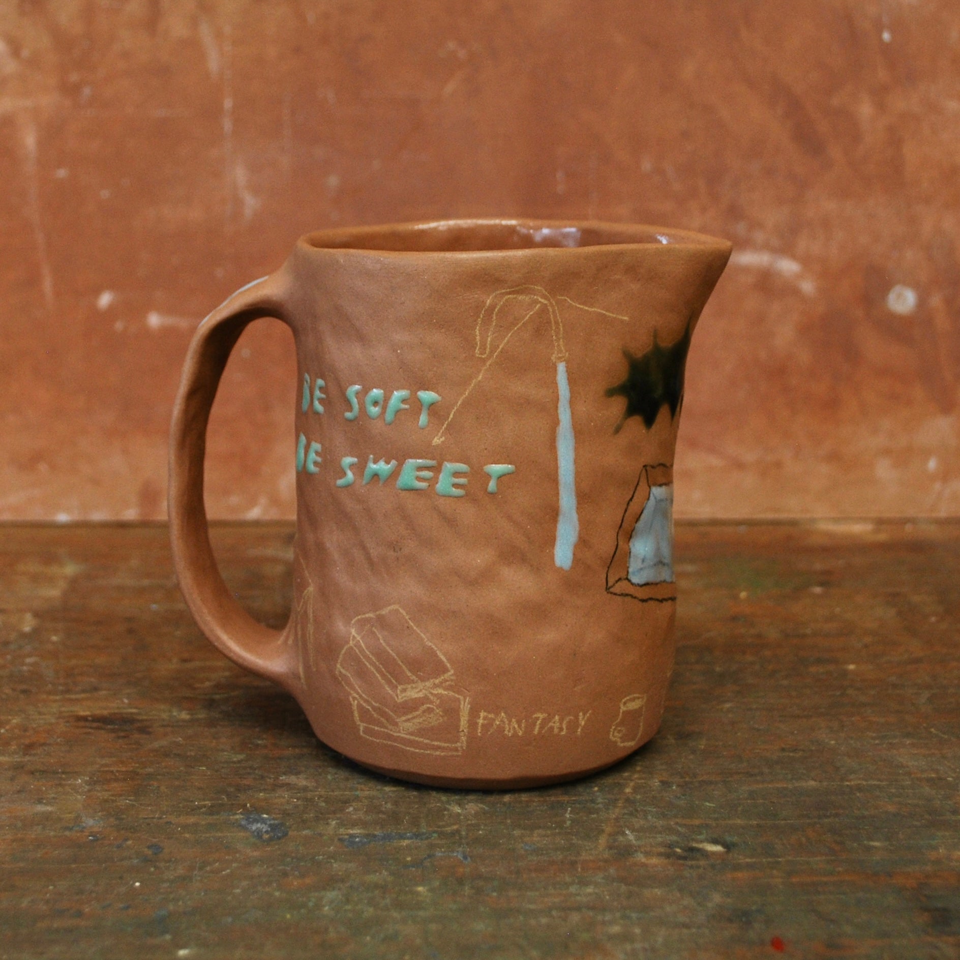 raw clay exterior, glazed interior