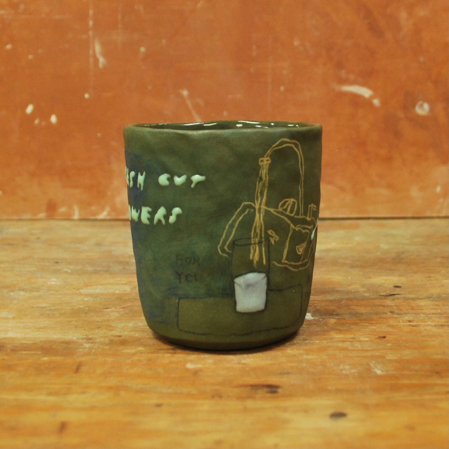 raw clay exterior, glazed interior