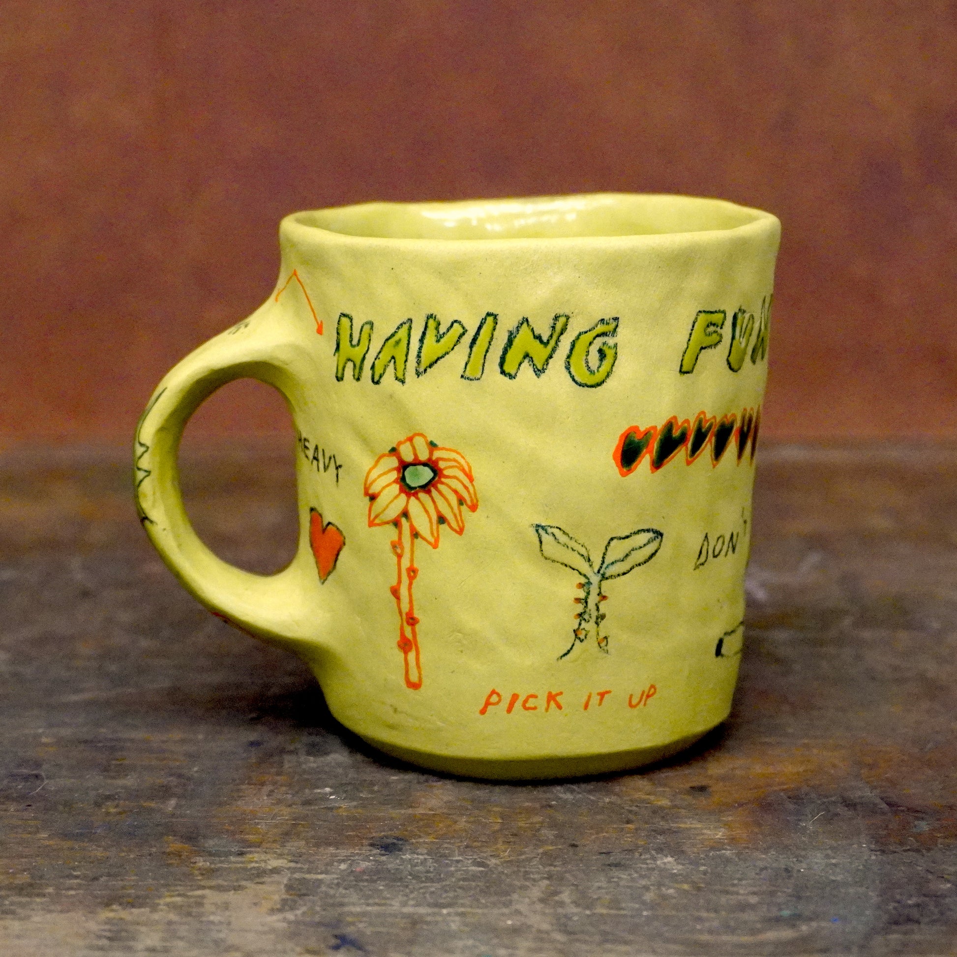 raw clay exterior, glazed interior