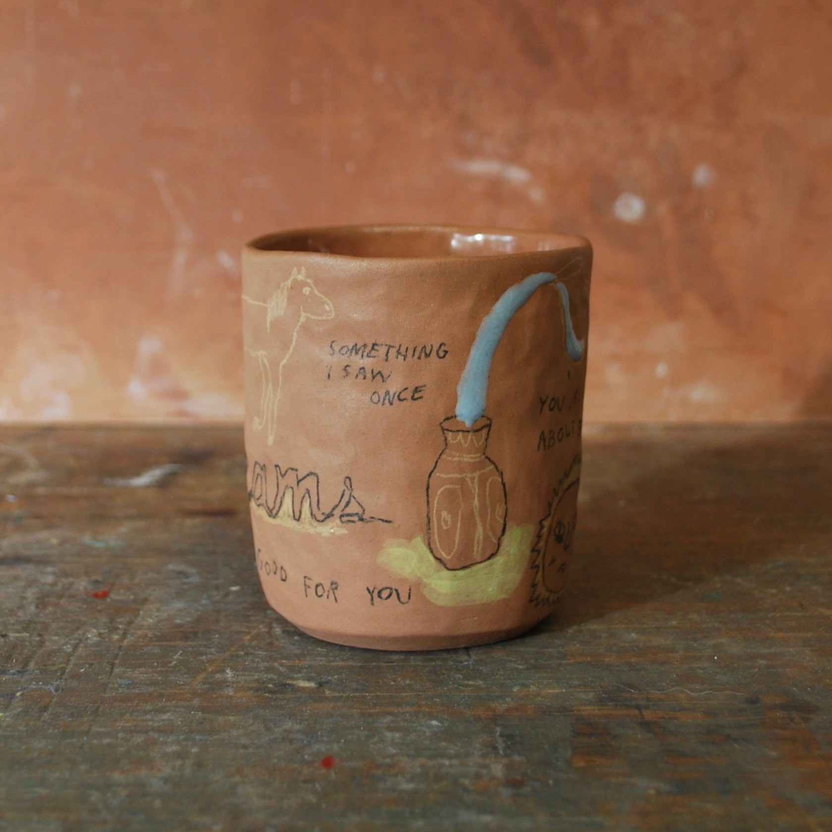 raw clay exterior, glazed interior