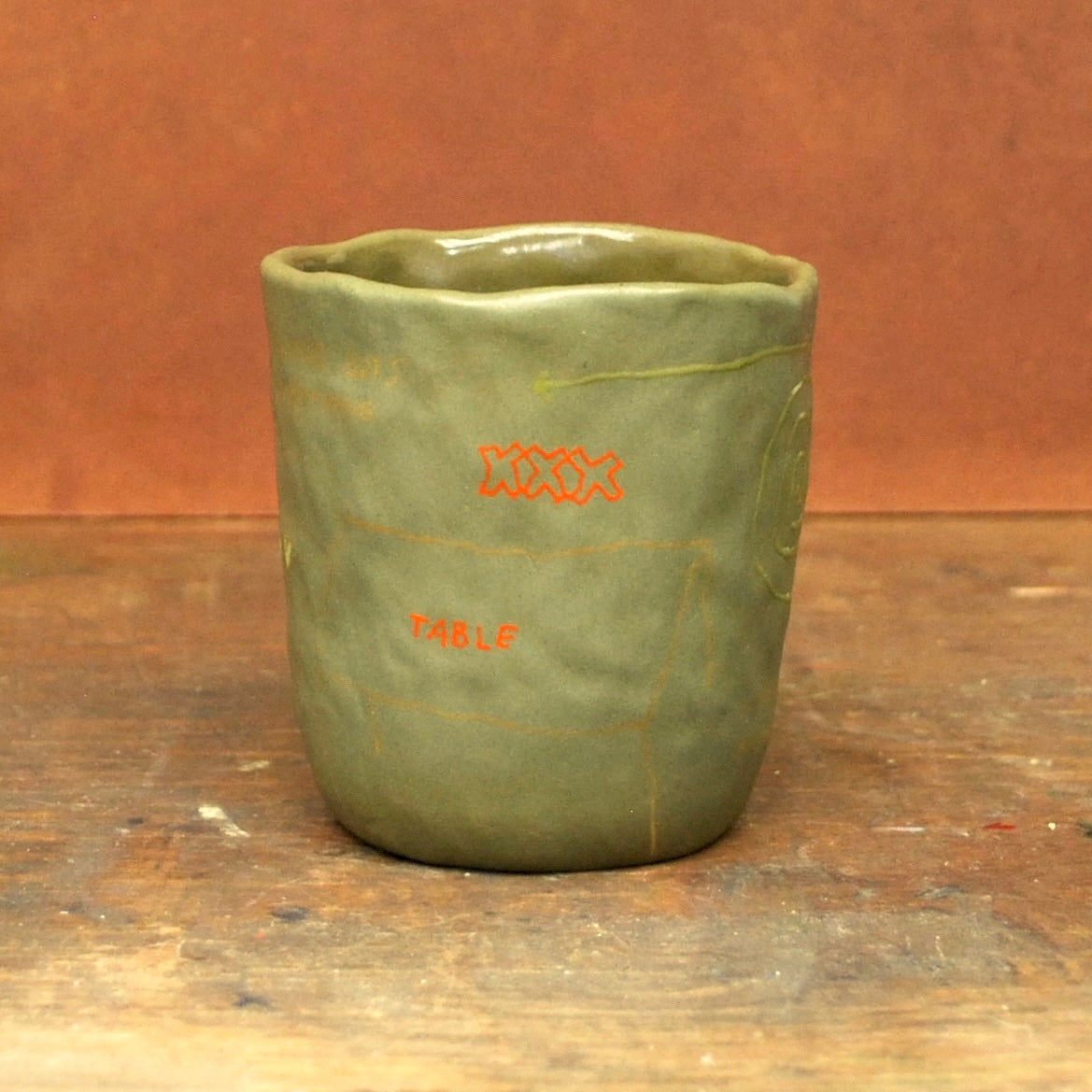 raw clay exterior, glazed interior