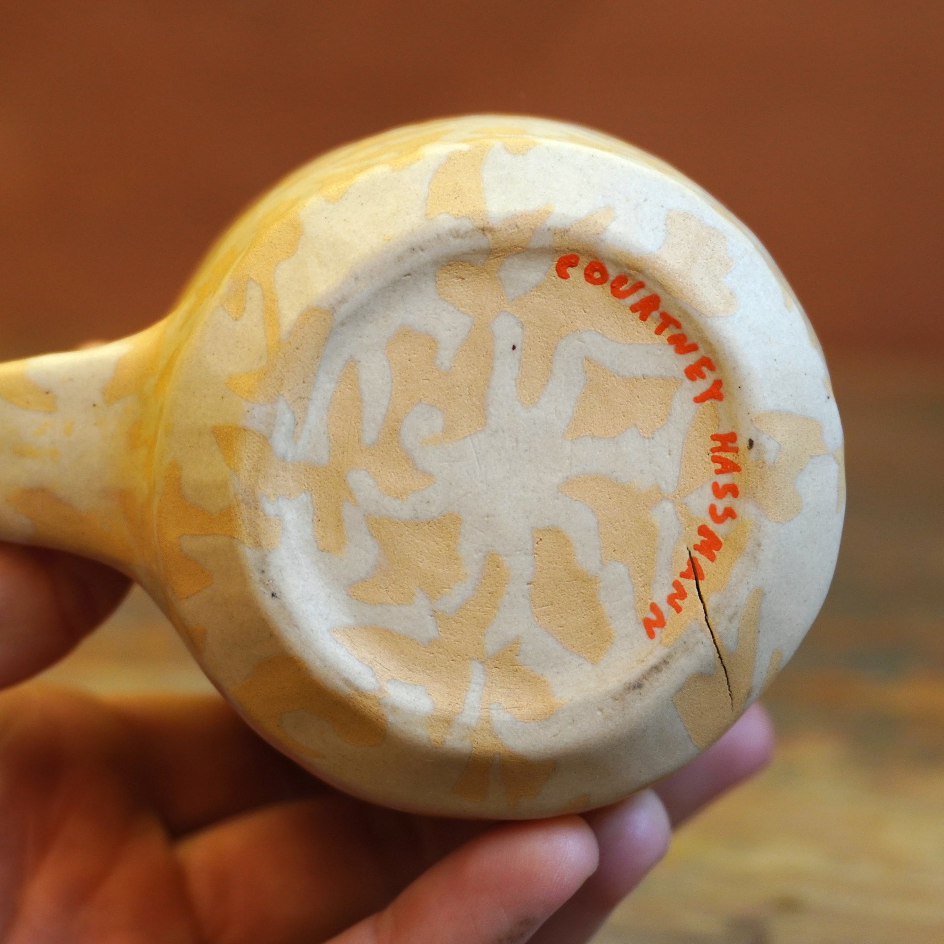 **this item is a second, external crack on the bottom, internal crack covered with glaze, does not affect function