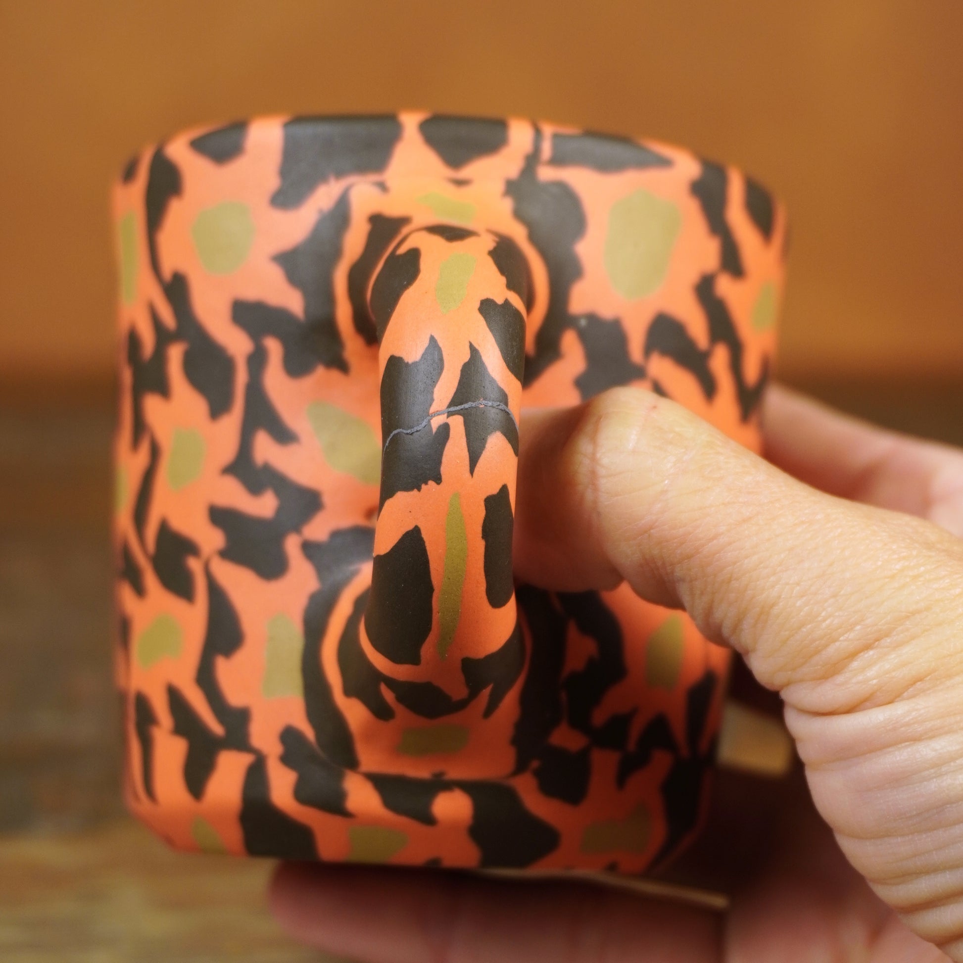 *exterior crack filled with epoxy, fully functional- while the epoxy is waterproof and can withstand heat up to 500 F, i do recommend handwashing and not putting in the microwave for the longevity of the piece