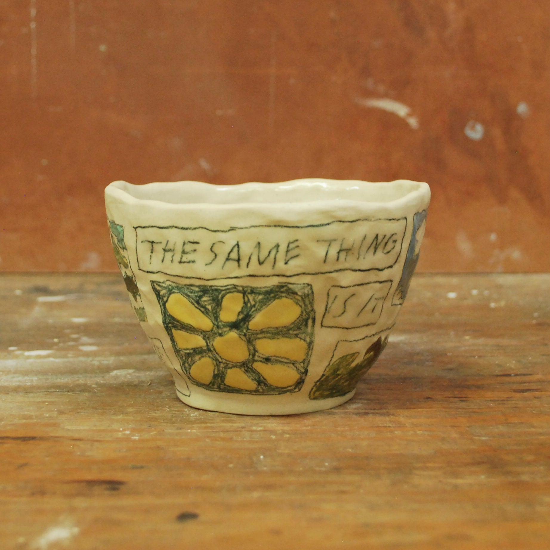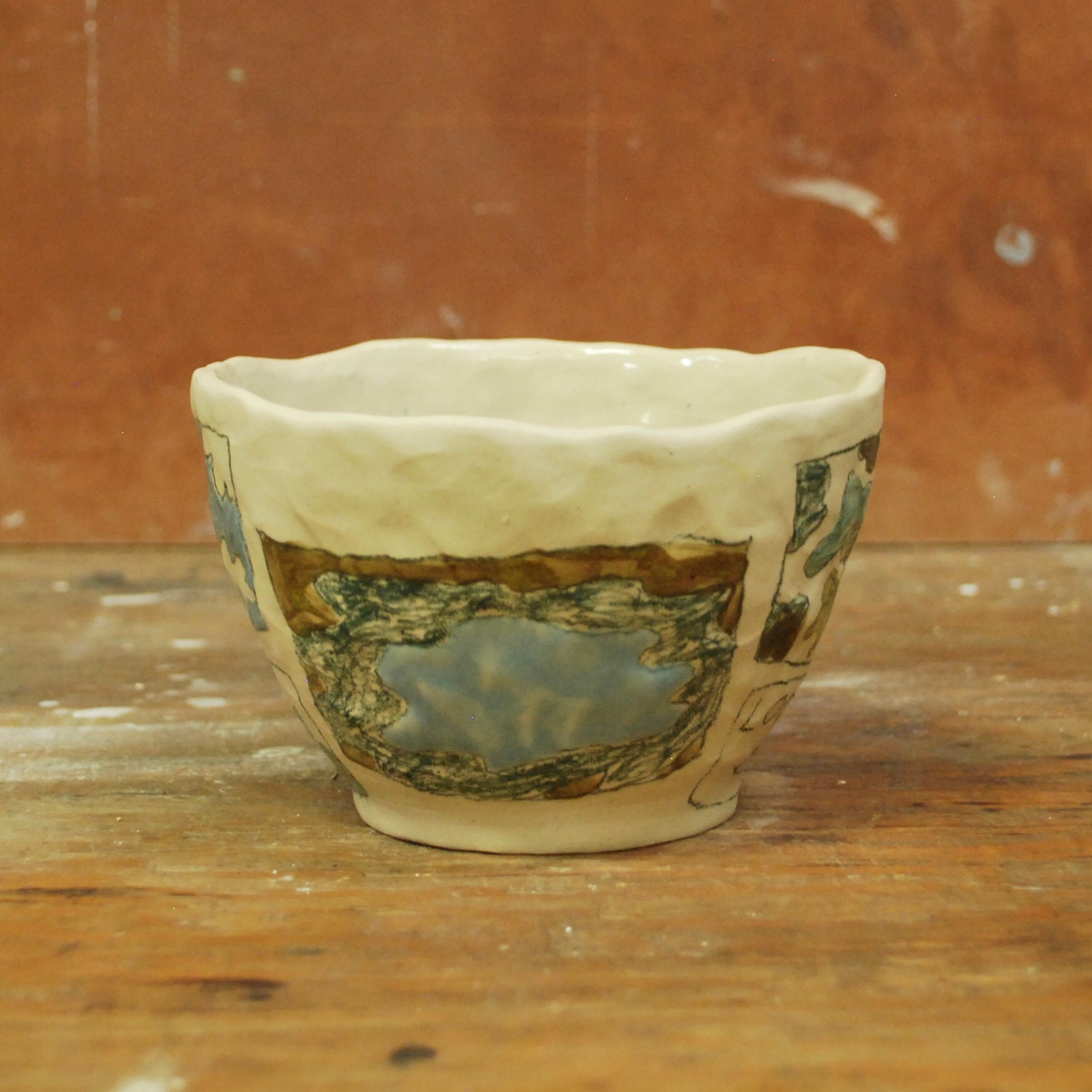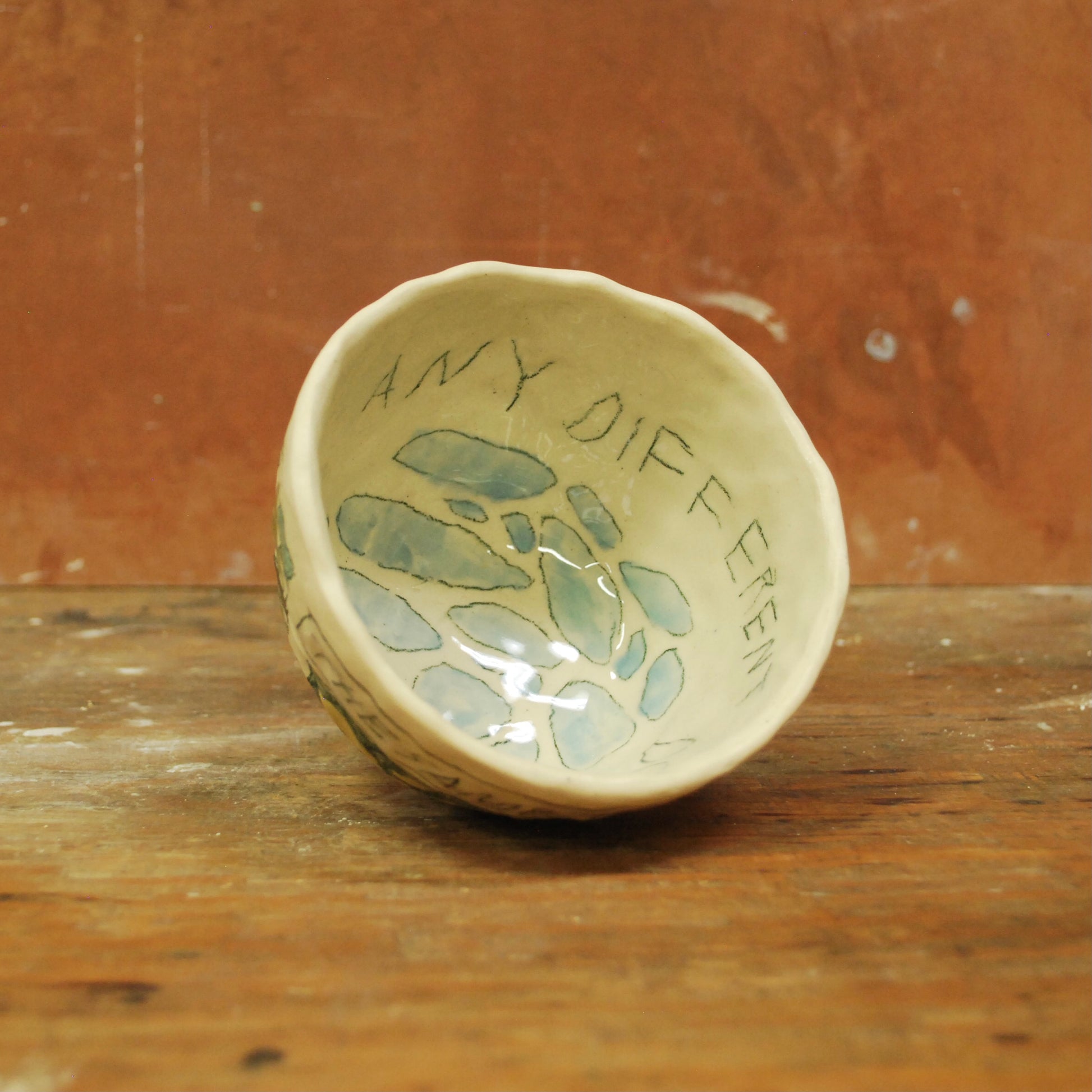raw clay exterior, glazed interior