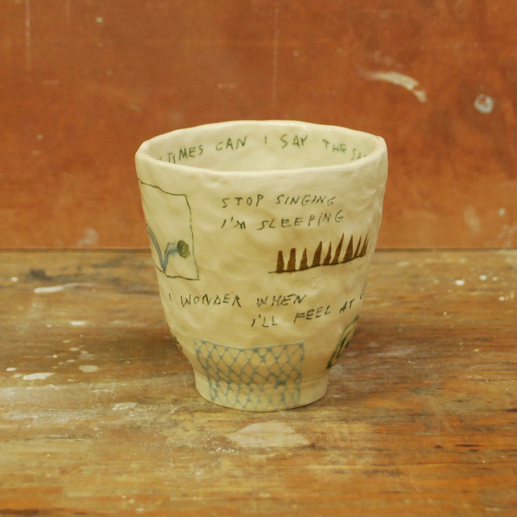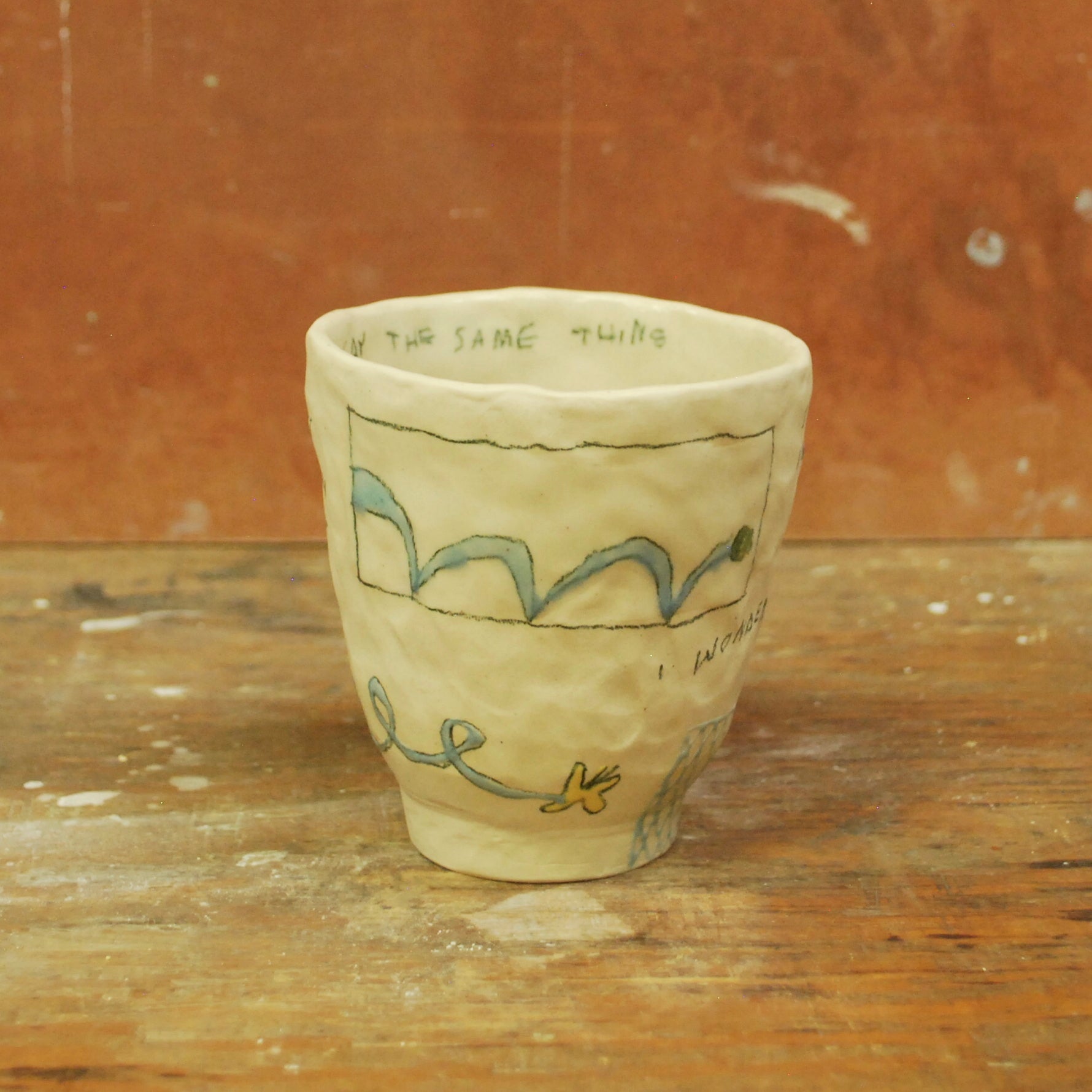 raw exterior, glazed interior